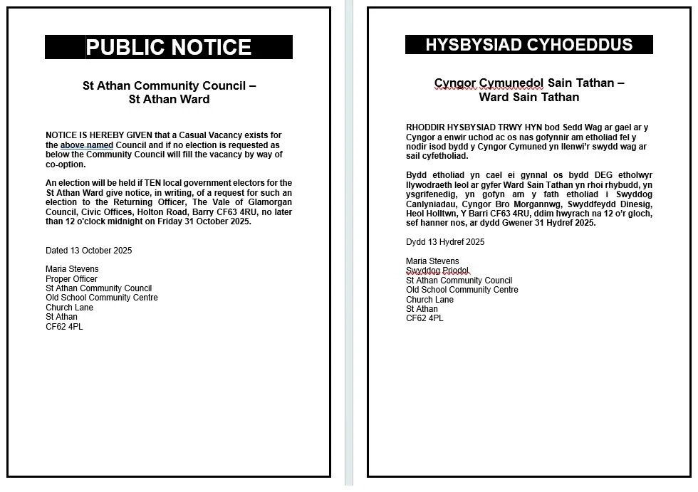 Welcome to the St Athan, Flemingston, Eglwys-Brewis, Gileston & West Aberthaw Community Council Website 〰️